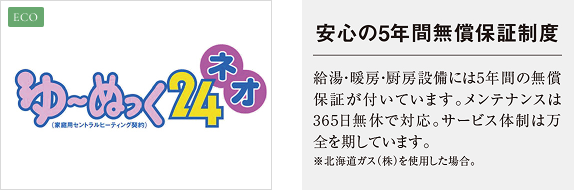 給湯・暖房・厨房のガスすべてに《ゆ~ぬっく24ネオ》が適用され、ガス料金が経済的です。