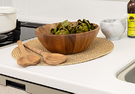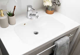 継ぎ目のない一枚トップで日々のお手入れも簡単。落ち着きとあたたかみのある高級感あふれる素材を採用しました。