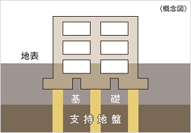 標準貫入試験により、事前に入念な地盤調査を実施し、建物を支える地盤の強度・深さを確認。その結果に基づき、支持地盤の性状にもっとも適切な基礎方式を選定しています。