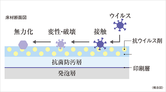 抗菌加工を施したシートを居室の床材に採用。ウイルスの数を減少させるので、清潔に保つことができます。洗面室、トイレ、一部収納スペースに採用。