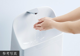 大人から子供まで、しっかり手が洗いやすい高さに設計しています。水はねもしにくく、いつでも気持ちよく洗えます。