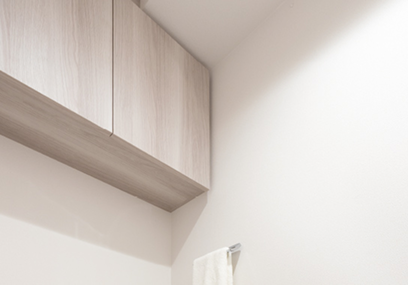 トイレ空間を有効に活用できる吊戸棚を全住戸標準装備しています。