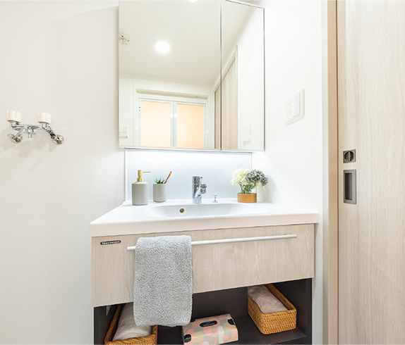 清潔感と使いやすさを両立した洗面スペース。