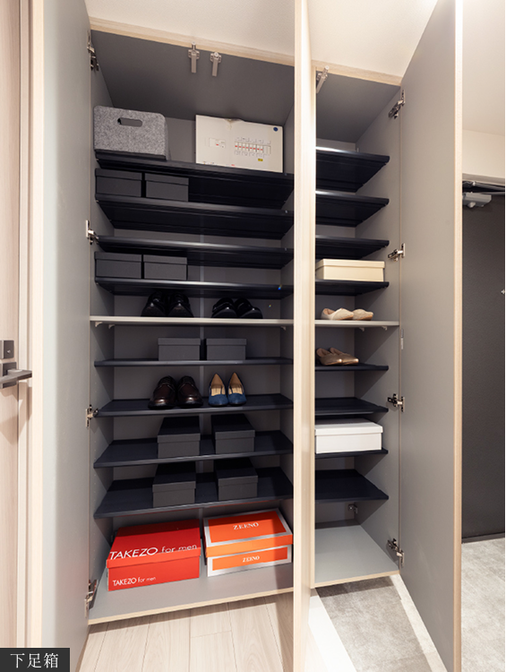 ワイドで奥まで手が入りやすい2段スペース開口型の収納スペースです。