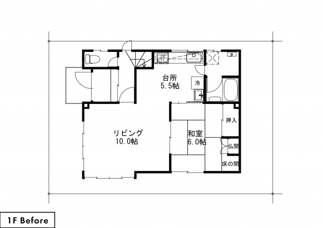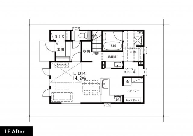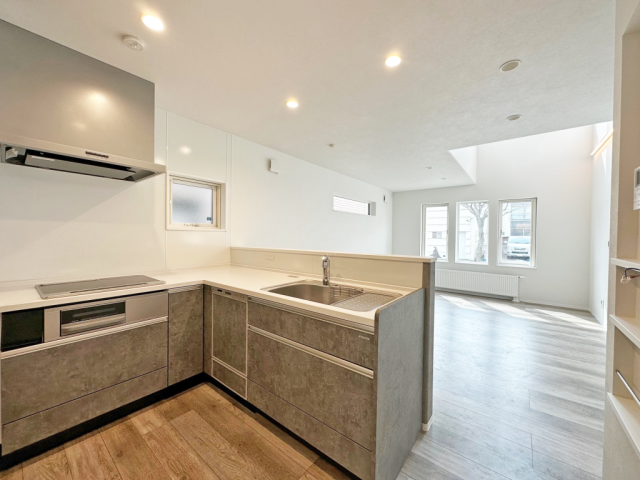 リビングとキッチンが別空間になっていた既存の間取りから対面キッチンに変更しリビングが見渡せるようになりました。