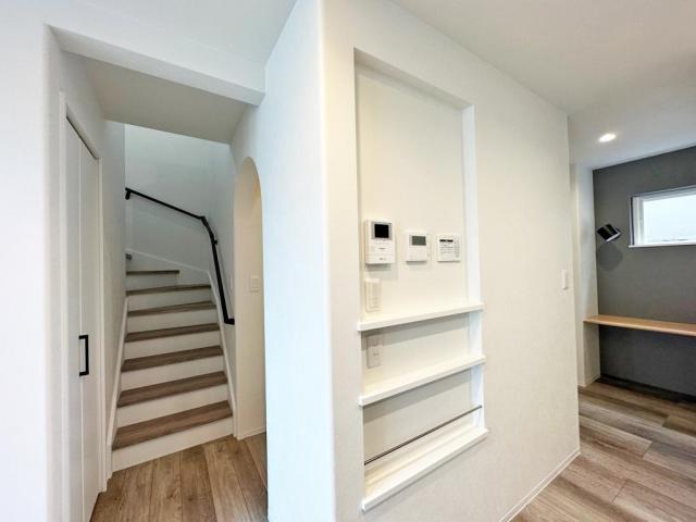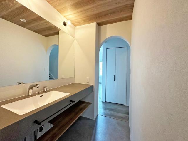 1階は洗面室を中心にランドリルームからワークスペース、キッチンへと繋がる家事のしやすさを考えた回遊動線。