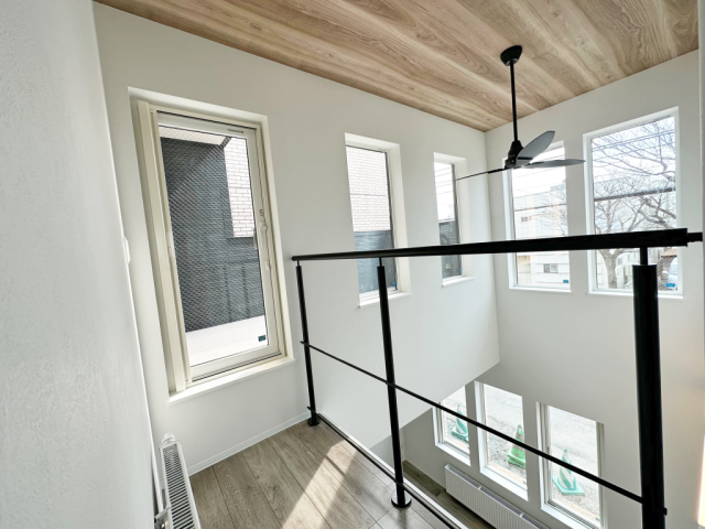 2階にいても吹抜けから自然と繋がれるあたたかく明るい暮らし。