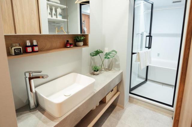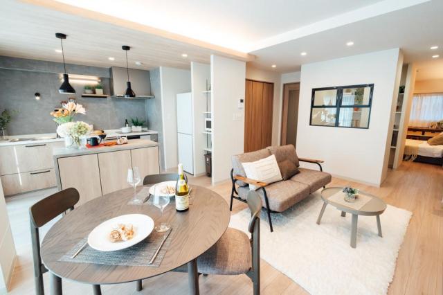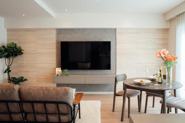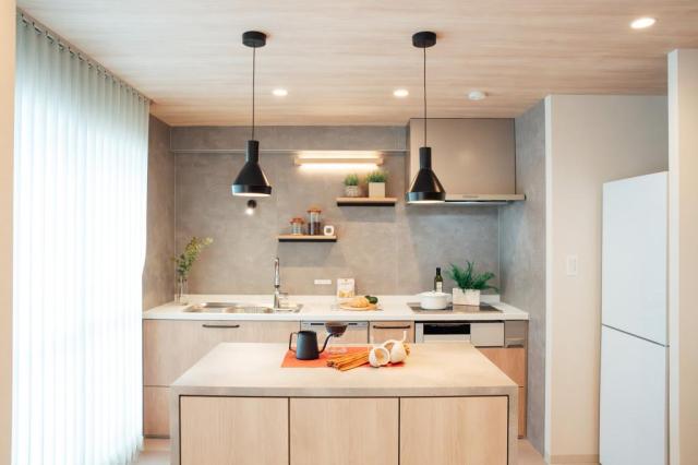 内装はグレージュで優しく上品にモダンな雰囲気に仕上げ1年を通して気持ちよく過ごすことができます。